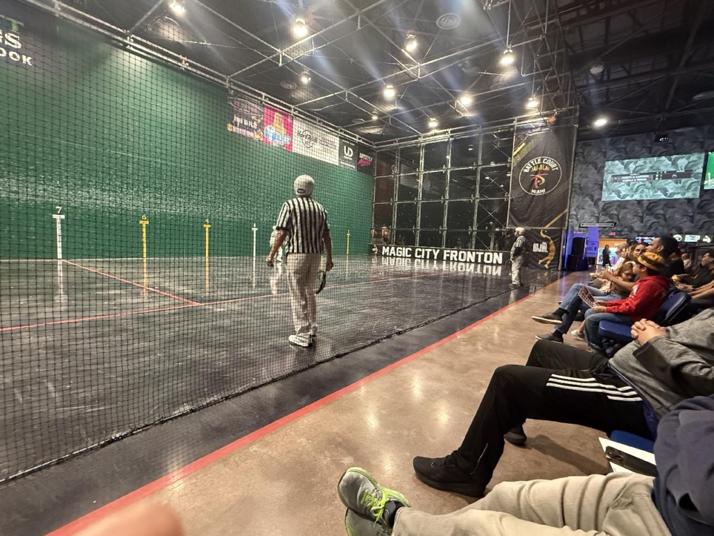 Luckily, this will sound of pelota hitting the front wall will drastically change as they move a couple miles north and will be throwing against a granite wall that will be 100- years old! Unbelievable. The court will still have a glass back wall, but this allows for great viewing of the court and video angles that make viewing on TV or your phone a huge advantage. The shorter court does not bother me – it does allow for fast action and some great non-stop catches off the side wall. As someone recently posted on Tigers site, this is the case especially watching the division 1 and 2 players go at it. Manu makes it look so easy you almost expect a great catch every time. Watching Urrutia serve is something else. The ball is moving so fast, one can barely sese it. Even Benny got plunked in the belt with a serve Friday night.