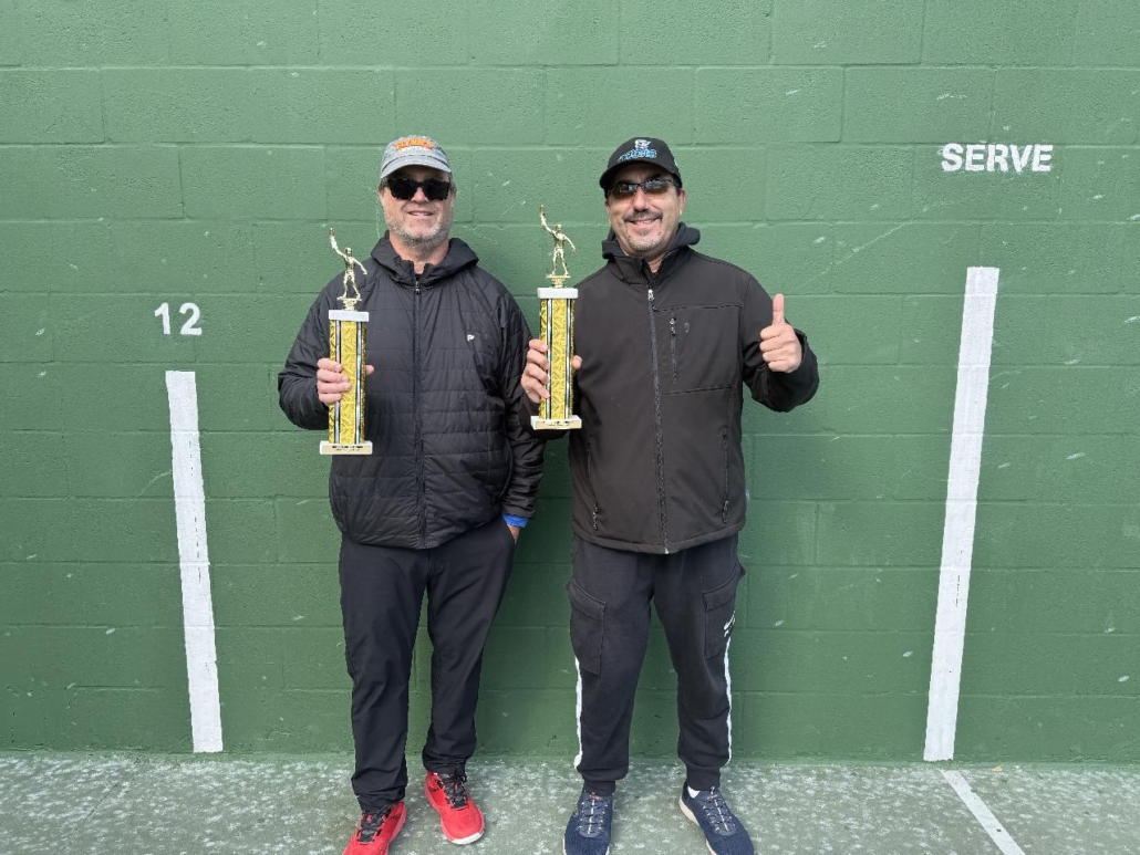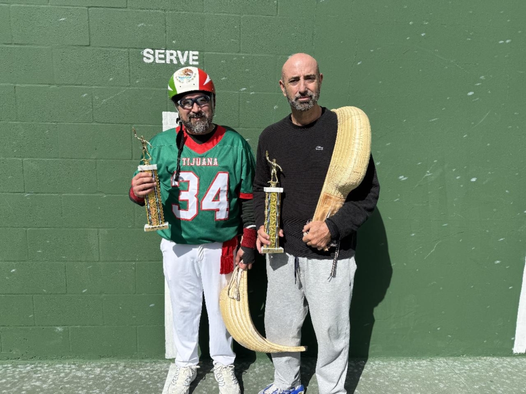 The singles tournament came down to two St. Pete regulars. That event was delayed a day to Sunday and was mostly players from the St. Pete roster that participated. One of the best exchanges of a point involved Rocco and Brodie in the finals. The video can be viewed compliments of tape sent to the Pelota Press by Armenta. Rocco took the contest 10-8 over Brodie.
